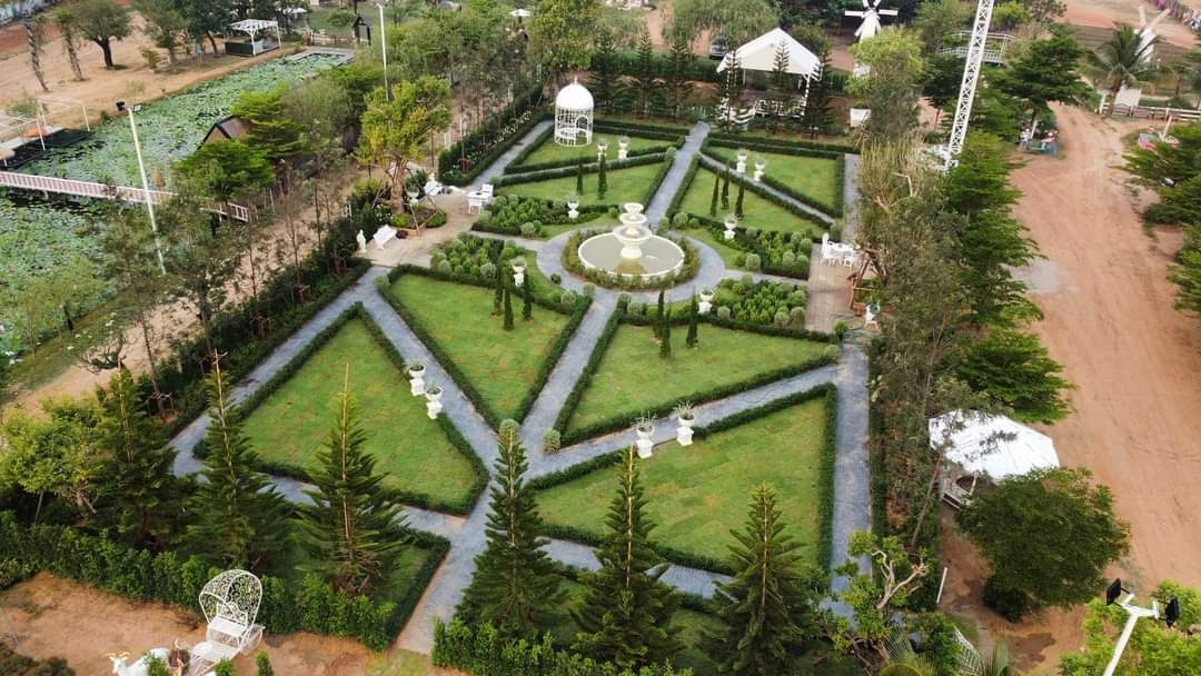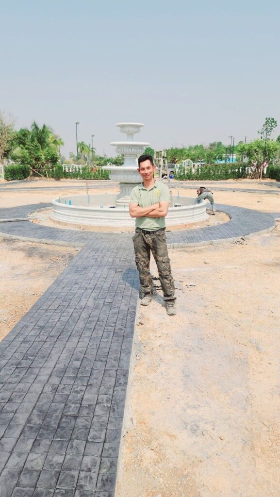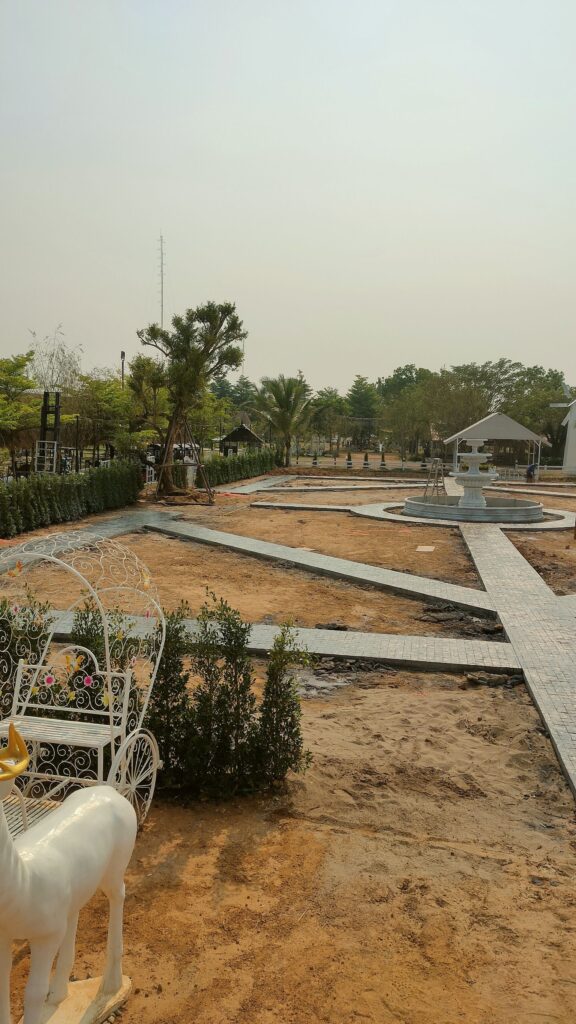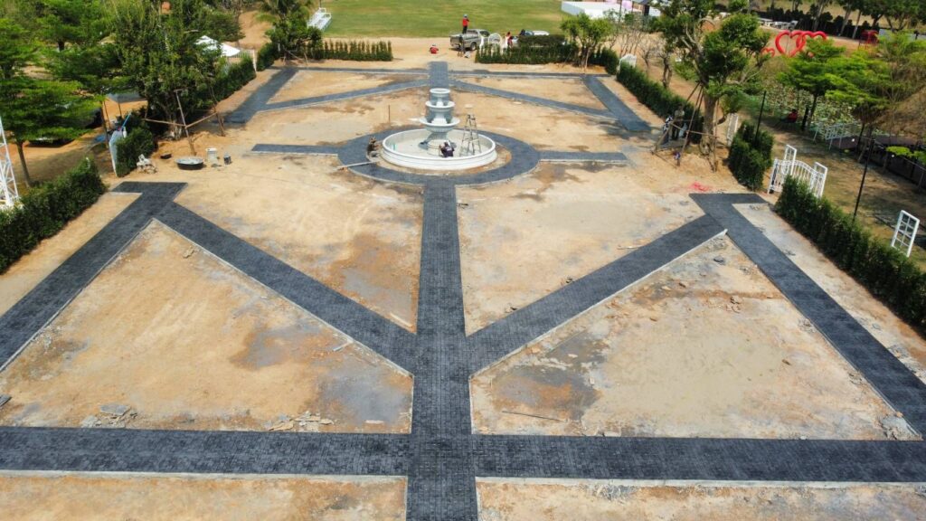 ลายแกรนิต โกดังข้าว ไชยกุลฟาร์มเอาท์เลท จ.ยโสธร อ.เลิงนกทา ทางเดินสวนอังกฤษพื้นที่ 380ตารางเมตร